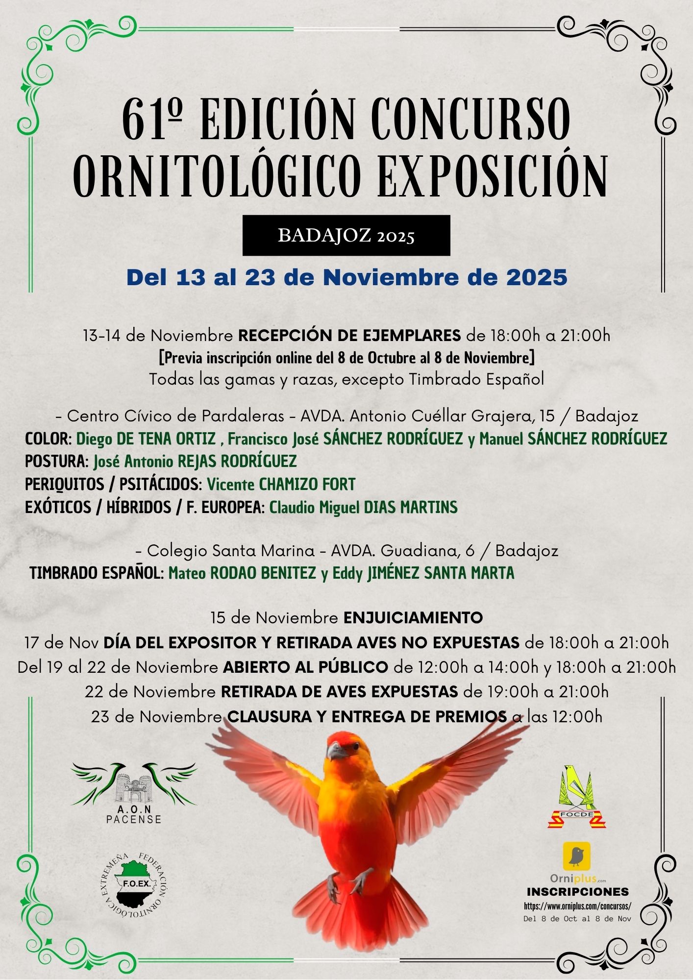 LXI Concurso - Exposición 2025 A.O.N.PACENSE (Badajoz)